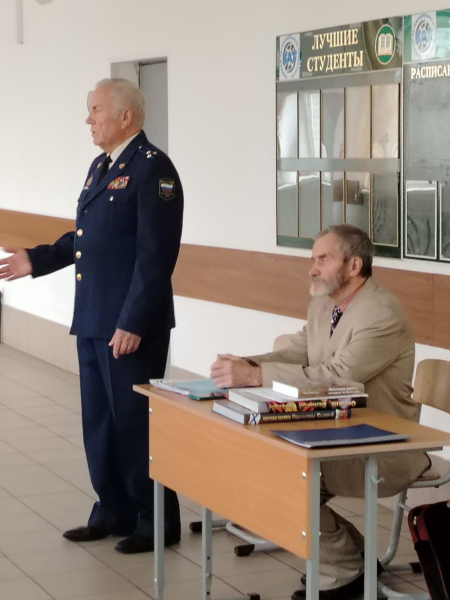 Ветеран военно-воздушных сил Виктор Луценко, заместитель председателя совета ветеранов УВД по САО Алексей Куренков и автор патриотических песен Эдуард Железогло провели патриотическую беседу «Разговор о главном» для студентов автомобильного колледжа, расположенного в Керамическом проезде.