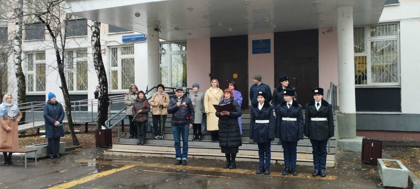 В школе 1223 у стелы «Вечная память героям» состоялся торжественный митинг и парад кадетов, посвященный историческому Параду 7 ноября 1941 года в честь годовщины Октябрьской революции.