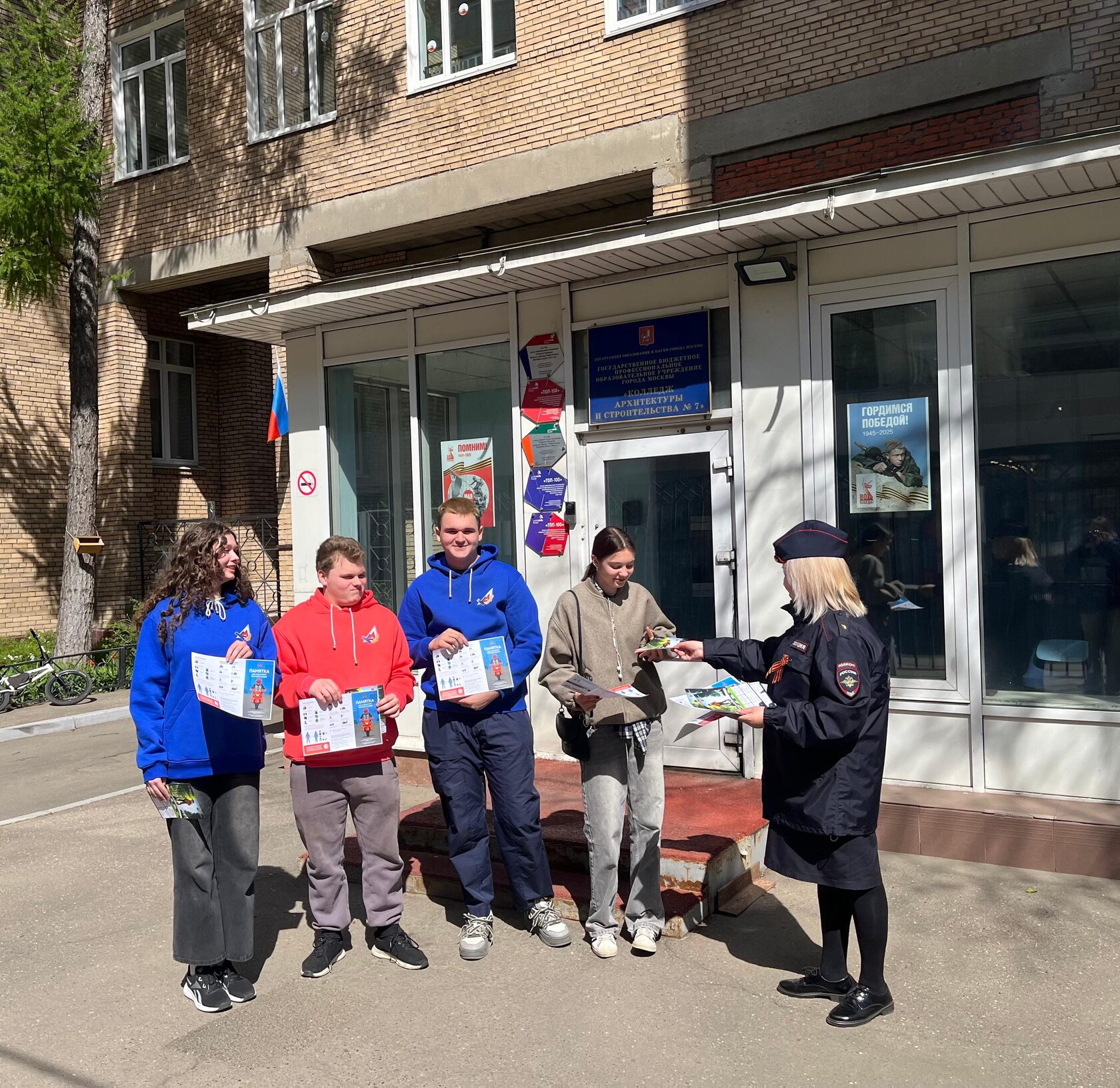 В рамках профилактического мероприятия «Подросток – мотоцикл» сотрудниками группы по пропаганде Отдела ГИБДД Северного административного округа совместно с участниками общественно-государственного движения «Движение первых» ГБПОУ Колледжа архитектуры и строительства была проведена акция, направленная на снижение дорожного травматизма среди подрастающего поколения водителей двухколесного транспорта.
